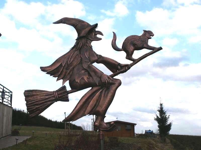Hiernaast heks met kat in koper, ambachtelijk kunstsmeedwerk, hoogte +/- 1,2 x breedte +/- 1,5 meter, geplaatst in de buurt van Annecy (Haute Savoi France) klik op de link voor meer kunstsmeedwerk: http://forgeron.skynetblogs.be