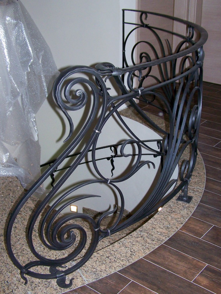 Gebogen balustrade in lichte Art Nouveaustijl, alles ambachtelijk gesmeed,