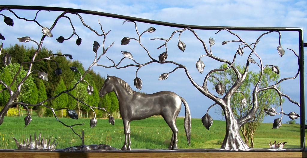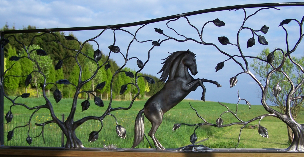 Wrought iron with horses and trees, all handforged 2m.75cm x 60 cm.