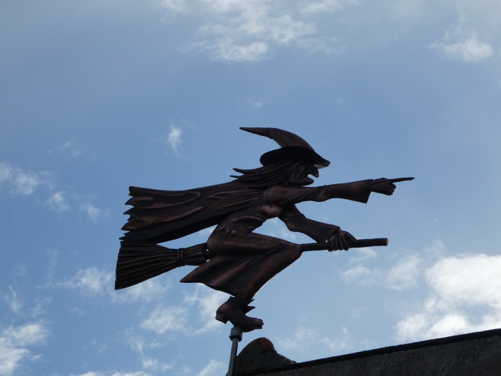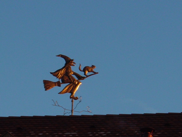 Windwijzer, heks met kat in volle vaart . Net zoals alle andere exemplaren volldig handwerk en gemaakt op bestelling. Afmetingen +- 80 x 100 cm. geplaatst in Noardburgum (Friesland)